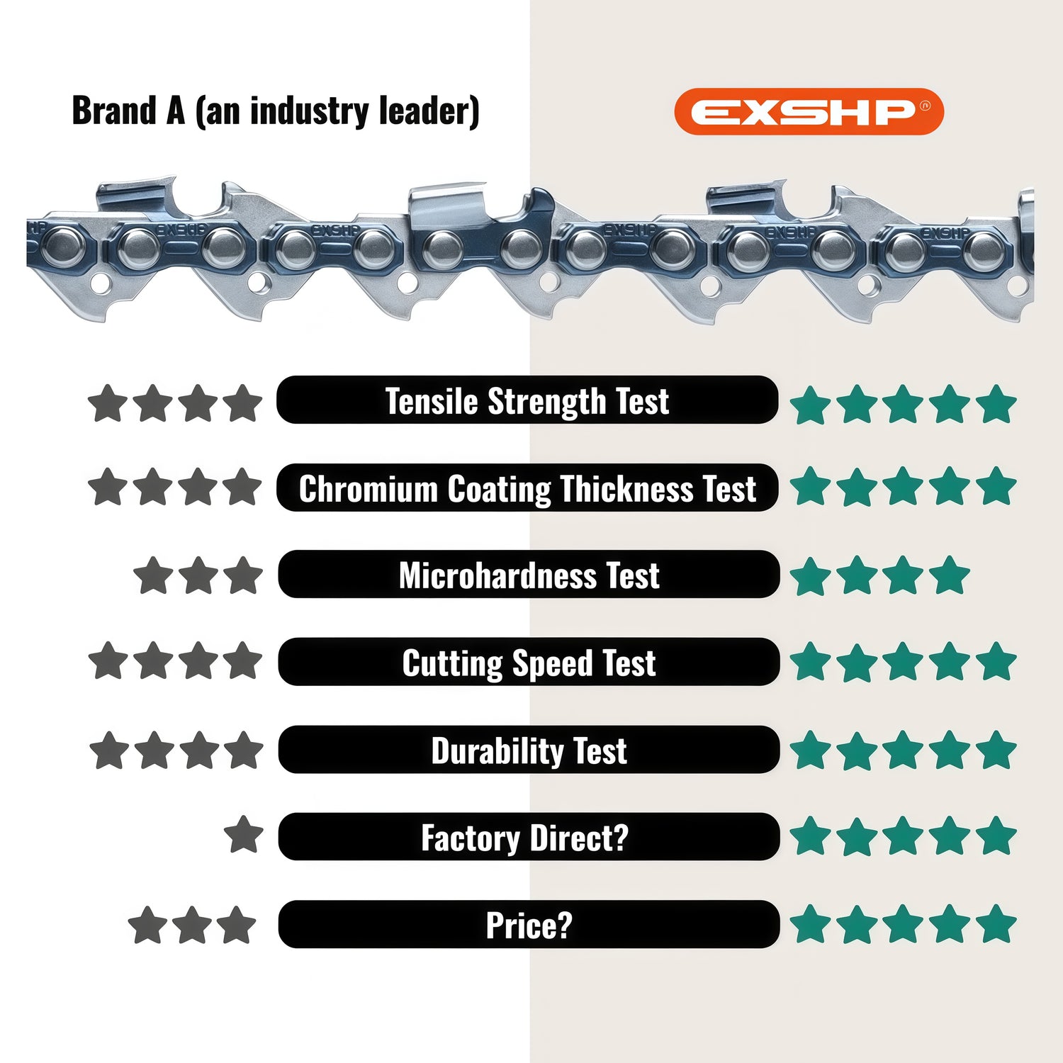 EXSHP Chainsaw Chains: "Crafted by the world’s #1 saw chain factory, born to crush 95% of chains on this planet—every test, every time."